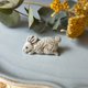 A white fluffy rabbit. A cute brooch with a beautiful shine unique to pottery.