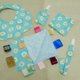 材质:日本进口二重纱&韩国进口豆毯 内容物:云朵造型口水巾/平安符袋/小方巾/多用途奶嘴链(玩具链)/安抚巾 产地/制造方式 产地台湾 手工制作