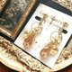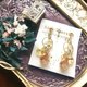 蜜桃色宝石会随着光线角度展现不同的风貌,如同春风中摇曳的花朵般,散发出细腻的气息。此外,环绕宝石的细致金色饰纹,宛如捕捉了花苞初绽的瞬间,其充满女性魅力的细节令人着迷。而水晶玻璃的垂坠设计,随着配戴者的动作,闪耀着动人的光芒,点亮脸部周围的轮廓。