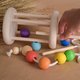 去掉鼓中的一根棍子,可以在上面串上木球。明亮的木珠可以在棍子上轻松移动。演奏正在发展的感官拨浪鼓,您可以透过手指拨动棍子上的珠子来玩算盘。孩子可以独立滚动木制蒙特梭利玩具,也可以与爸爸妈妈一起玩玩具。转动、摇晃音乐拨浪鼓,可以听到木珠诱人的敲击声。