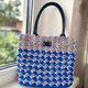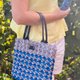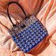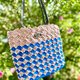 - This bag with a unique design is my author's development. The bag is made of glossy raffia. The combination of blue and silver colors that shimmer brightly in the sun will make you irresistible and unique. The bag is complemented by black leather handles. It is comfortable to wear on the arm and on the shoulder. - Made in a 100% Smoke-Free home