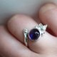 Holding an amethyst with a round cabochon