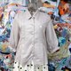 **日本中古灰色通花边双层领中袖衬衫 上班文青气质女神风二手古着**