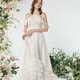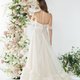 泡盛草(Astilbe)花语是清澈的爱。此款上身肩膀处为露肩效果,上有荷叶袖,脖子处绕细绑带延伸至后颈,下裙具份量感的裙摆有多层荷叶拼接,走路时裙摆摇曳相当罗曼蒂克,整体外层采用植绒点点纱,宛如泡盛草外型所呈现出来的梦幻氛围感
