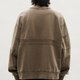 - 此款以 380g 重磅大绒布制成,正面两侧以外翻剪接线条结构,预留加长缝份并施以双道装饰压线,边缘保留毛边细节,增添层次感。袖身采上下错位拼接设计,让袖子在着用比例上,营造整体视觉差异。