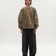领口与袖口接缝皆以不收边处理,经水洗后自然产生不规则皱褶与卷边,同时带出整体做旧风格,搭配炒雪花工艺的滚动摩擦与药水处理,使衣身形成随机白斑驳纹理,塑造独一无二的雪花效果,并进一步强化衣物的柔软度与穿着舒适感。