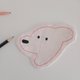 Item 1: Dog face in Pink. 11 cm x 12.5 cm.
