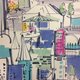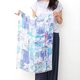 一款印有插画风格、俏皮街景图案的印花丝巾。