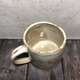 瓦斯窑稻荷白釉 米白底透出褐色小点散落在表面上 形成日本古典釉色中的朴实无华温润的釉色 此杯型口缘较为特殊 跳脱一般正圆规矩行式 特设计为为椭圆型状 多了一些叛逆性格
