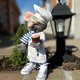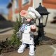 A mouse ready to go home.. Made of high quality velour. The inner part is reinforced with wire, which allows the handles and knives to move. Glasses and shoes are removed. Glass eyes. The mouse is 27 cm (10.24 inches) tall.