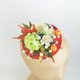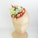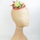 红色纤维草基底,搭配着莱姆绿与白色的丝质花朵、蘑菇和叶饰。
