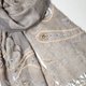 北印度克什米尔的围巾虽然乍看比较花俏,有很多佩斯利腰果花等图腾与颜色鲜艳的绣线或钉珠,但是他当围巾绕起来配戴时,图案就会低调很多,留下一种色块和片段的特色氛围印象感,又有很多精致值得细细品味的细节。所以我们围巾都会模拟绕起来配戴的样子或绕成一颗球让您可以想像并参考配戴起来大约会是什么样子。