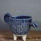 mini pitcher blue is a handmade ceramic work. forming by squeezing Size : 13x6.5x7.5 Cm. Capacity: 60 ml. Soil : Stoneware clay Temperature : 1,220 degrees Celsius There is only 1 product. Caution, the product can break.
