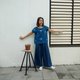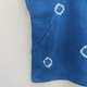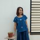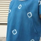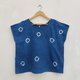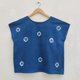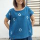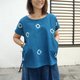 圆领短袖靛蓝色扎染衬衫。正面设计精美,三角形接缝。简单又舒适的宽松衬衫。可爱的设计,凉爽的靛蓝染色图案。