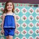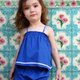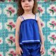 The set, composed of a flared top and a bloomer, has beautiful white flower trim to make it more stylish. Top with thin straps and elastic at chest. Bloomer elasticated at waist and hem to adjust to your baby.