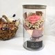 - |尺寸规格| 花束总长度(含包装)约14cm。 花罐(塑胶PVC)总长度8.3cm*15cm。 牛皮外盒包装大小为8.5*8.5*22(cm)。 |花材介绍| 永生玫瑰(中朵)、满天星等。