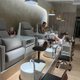 此产品为高端质感美甲店定制品,靠背为弧形成形合板,提升久坐舒适度,喷胡桃色突显木头稳重感。