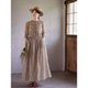 开襟到腰部的位置,就是抽碎褶,横向的分割延伸出自然大摆的裙身量,一根抽绳,就可以抽出X的身形。腰部会有微小的兜量,这一点微妙的兜量恰好,不多不少。显瘦又有仙气的裙摆,洋洋洒洒,是自在的得体感。