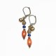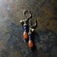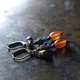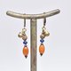 这款耳环串联了掸族复古红玉髓、蓝色琉璃珠、点点黄铜及民族铃铛。