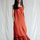 A relaxed style, this dress is made from Linen Fabric. Camisole and Ruffles ,2 pockets at the sides and U open back. The fabric is linen medium weight. Fine to wear without inner lining.