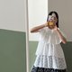 蕾丝拼接荷叶边层叠无袖上衣 + 花朵细节荷叶边裙