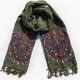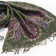 ▲喀什米尔靠近喜马拉雅山,为了对抗特殊的酷寒气候,刺绣羊毛是喀什米尔利用当地自然环境发展出来的一种细致的工艺, 当地海拔高,水的沸点低,早晨在太阳上升时,将羊毛制品,放入融化的高原雪水中浸泡,之后加热沸煮。到了傍晚太阳下山时,再把羊毛制品在月光下晒,经由繁复工续后的产品, 不但可以清除掉一些杂质,羊毛产生收缩,纤维之间更加地紧密,最后经由妇女手工编织及刺绣,呈现一件件颜色及绣法独特的织品