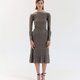 这款百褶针织连衣裙的V型开背线条迷人。贴身线条轮廓营造出优雅女人味。使用羔羊毛混纺纱线,洋装轻软无重量,背后开V领设计可正反穿着,螺纹设计细节修饰身型,尺寸F偏小适合S~M号身型