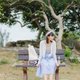 Colour : Gray/blue/ivory Size : Free Size 腰围60-80cm 裙长 80cm . $229 . // 布料选用有质感及有弹性的布料,布料有一定重量,𥚃面加有里布,不会透透的。 //建议手洗 能够让衣服的寿命更长// Model 160/169CM