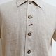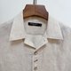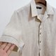 这款天然米色的短袖亚麻衬衫,袖口采用手工抽绦刺绣,这是一种细腻而引人注目的技术,体现了耐心、精湛工艺与沉静的优雅。