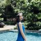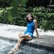 Collection #4 : 素面风格露背连身泳装/蓝色