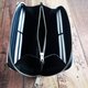 The zipper uses a wide fastener suitable for the wallet.