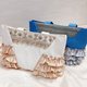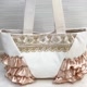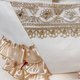 A gorgeous item that combines white cotton fabric with gold satin frills and lace.
