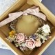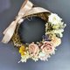 材料包: 不凋中玫瑰2朵/ 不凋蔷薇*1/ 不凋琇球花/索拉花*1/不凋米香/ 缎带/ 花圈20CM 玫瑰花色可另外选色/ 其他花材会因主花的不同而做调整 下单前可与设计师先沟通。 * 下单会附送小卡与 纸袋