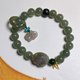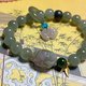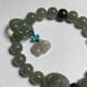 材质:天然深晴水和田玉圆珠,盐源玛瑙雕刻花蛋、和田玉晴水跑环、和田碧玉配珠、和田玉藕粉雕刻大象、松石雕刻蝴蝶结、绿檀老型珠、银镀金配饰。