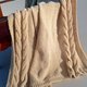 这款精美的麻花针织毛毯 + 2 个枕头套 - 手工打造,采用 100% 天然羊毛制成。纱线未经染色,保留了其天然的乳白色泽。