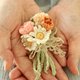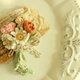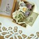 *别看是小小的花束,内里共有20多个组件合成,一点一滴地编织、组合、系上丝带、缝上针扣,细细地完成。