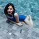 **Collection #4 :** 素面风格露背连身泳装/蓝色