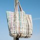 - ▲来自喜马拉雅山的棉布条手织而成,彩色的特殊织法 ▲宛如蓝天与白云的清新配色,最适合带去郊游