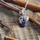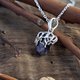 No.14 尺寸:高1.8厘米〈含坠头〉、宽0.95厘米 材料:925银、不透紫水晶 作品尺寸皆为手工测量会有些许误差值。 照片色泽与实体物件有所误差,作品物件以实体为主。