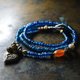 两款蓝色珠饰为印度古董珠饰,约于 19 至 20 世纪制成。