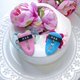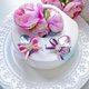 韩牌的金属色水滴夹配上一样是金属色的韩国蝴蝶布贴;上头加上有挺度的网纱(网纱上的激光亮片因为裁切部位的不同而有些微差异喔)、金边丝带跟亮钻。