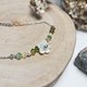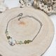 贝壳做成的小花,搭配青蕨黄水晶,再用柠檬黄、嫩果绿点缀出亮度