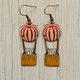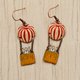 White Cat Earrings, Enamel Earrings, Hot Air Balloon, Cat Enamel Jewelry,