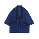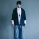 运用台湾马蓝、木蓝两种植物与不经漂整的棉麻材质拼接上西装领的材质 ,