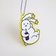星星兔喝红酒 特殊黄色压克力吊饰 吊饰尺寸 长5.4X宽7CM 珠珠链 长度约5CM 印刷面请勿大力涂刮,以免颜色脱落