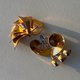 清单包含两枚漂亮的古董胸针,由镀金银制成 - 这是镀有一层薄薄镀金的银,通常为 12 克拉或 14 克拉。您也可以找到术语“vermeil”。第二次世界大战期间,美国没有足够的贱金属来生产人造珠宝。因为所有可用的金属都满足了陆军的需要,并且其使用受到严格监管。因此,1940年代的珠宝大部分都是由银制成的。