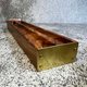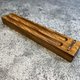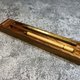 乌金木笔盘,长方体简约造型,以桧木为主木料,全手工切割、挖孔并保养上油,搭配手做金工铜条/铜片装饰、铆钉固定,制作而成的独一无二的笔盘,可放置两支常用的爱笔,避免爱笔碰撞的同时还能方便拿取,放置于桌面更能提升视觉的享受。
