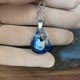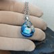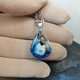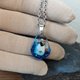蓝色环氧树脂吊坠,饰有贝壳、天然宝石和珠子,搭配不锈钢链。
