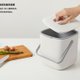 具有现代色彩和手把设计的厨余收集桶。