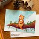 A 5.8 x 4 inch matt 300gsm postcard featuring my illustration The bear necessities, which is printed on one side. The reverse side is blank for your own message, with my details printed on the bottom left hand corner.